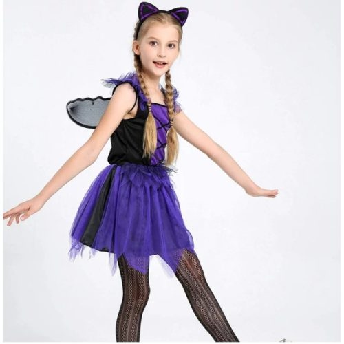 Denevérlány jelmez fekete lila 6-9 éves méret