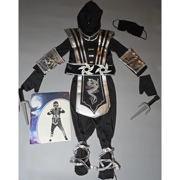 NINJA HARCOS JELMEZ – FEKETE-EZÜST SZETT FEGYVEREKKEL